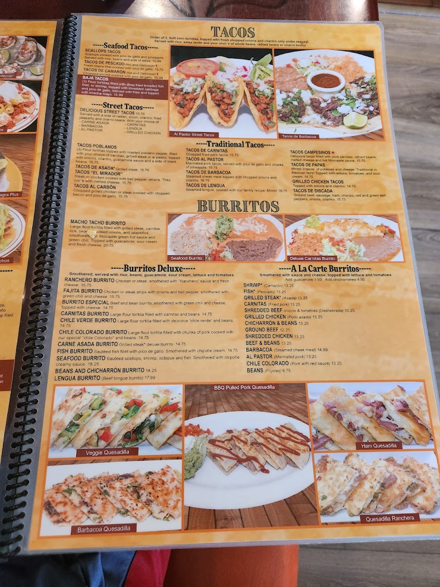 El Mirador Mexican Restaurant Menu